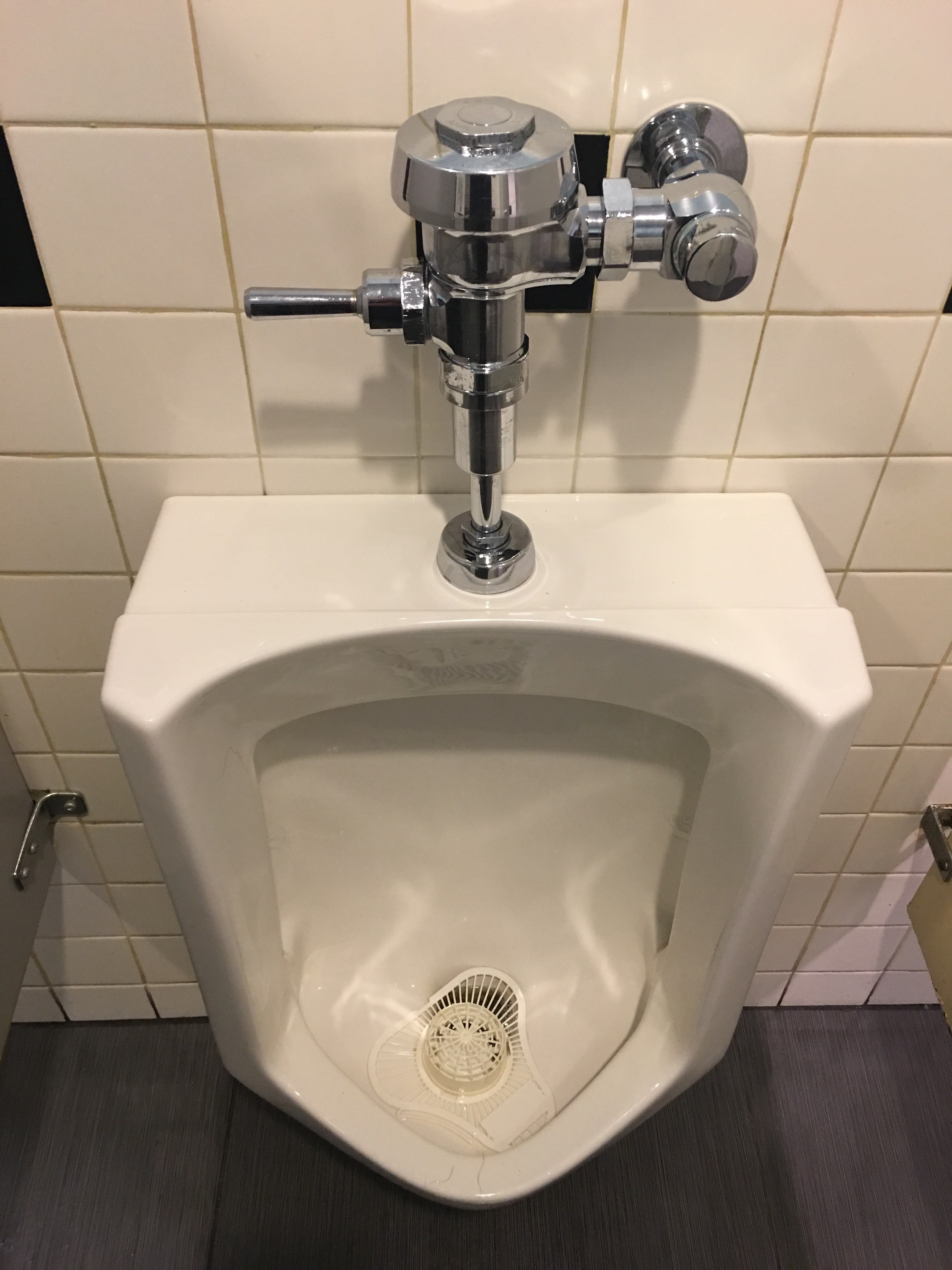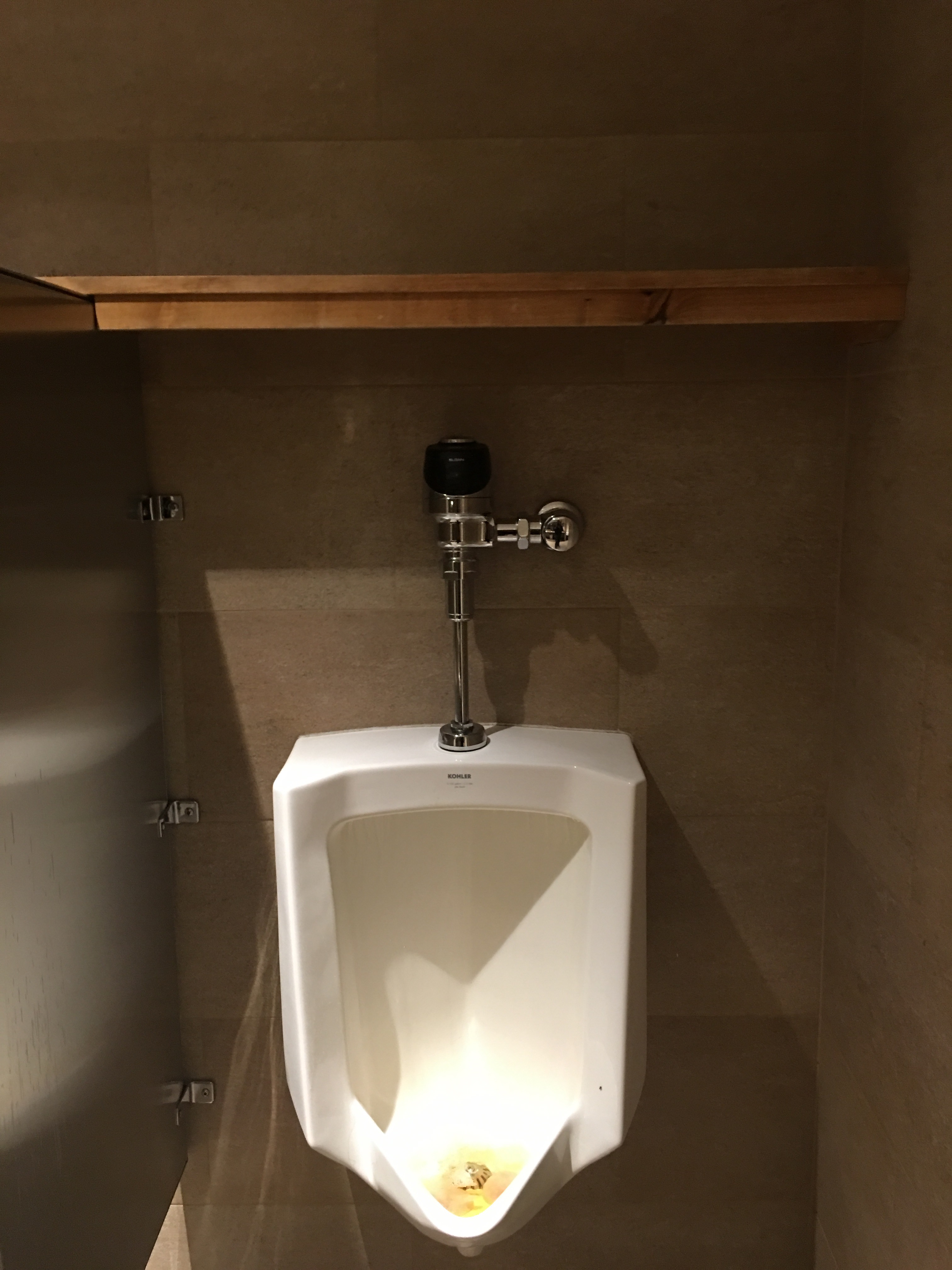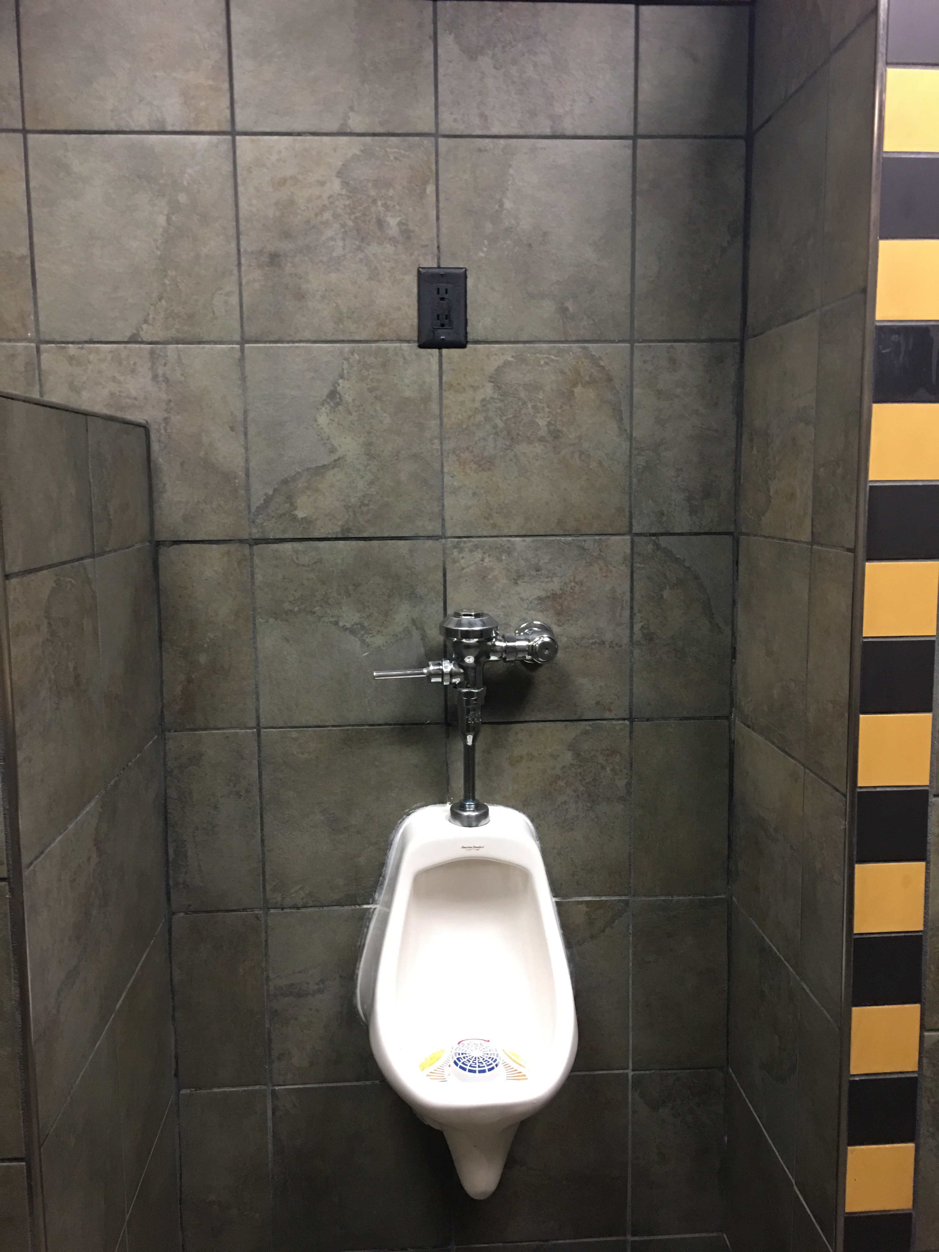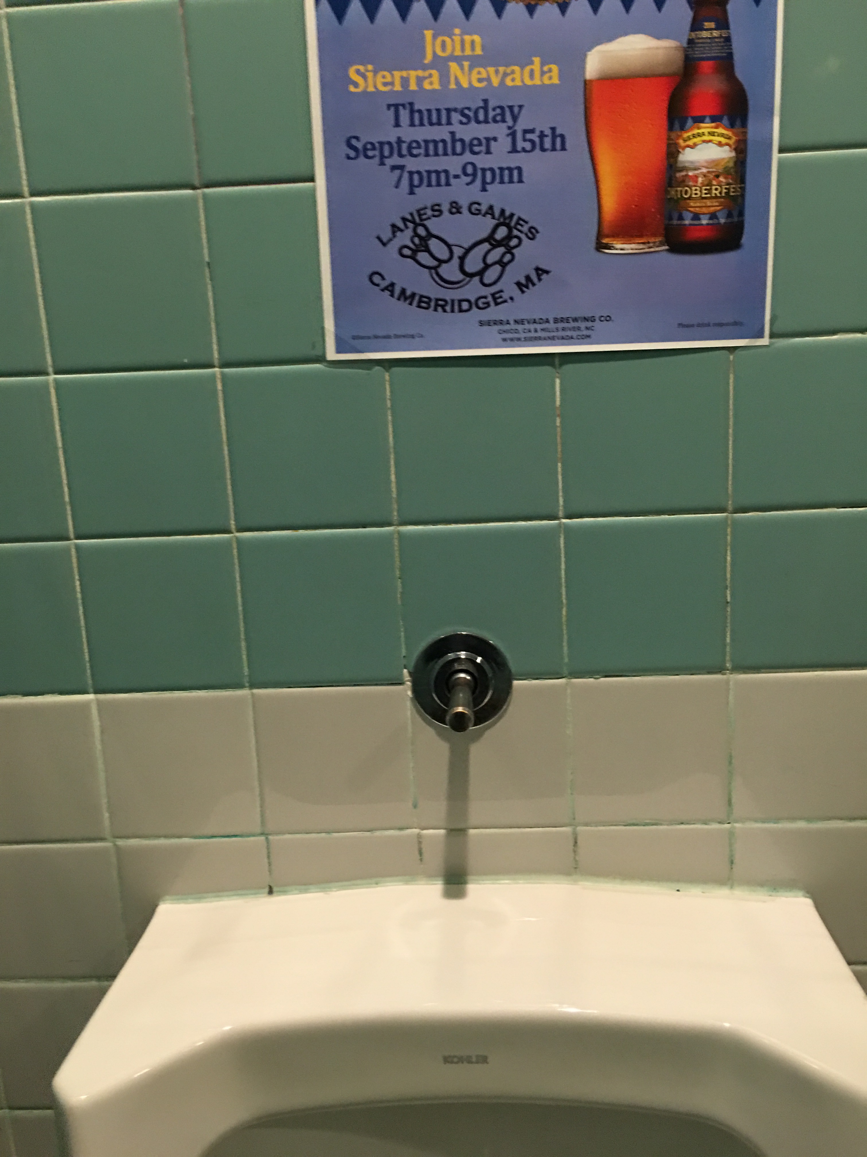 It’s a bowling alley, so expectations are definitely low. One of the more interesting ones though since all the plumbing is behind the wall except for the handle to flush with.